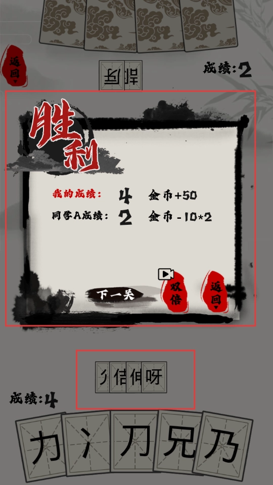 对战结束后,可依据胜利界面显示的成绩,选择进入下一关继续挑战,也能点击“返回”按钮选择其他模式进行游玩。