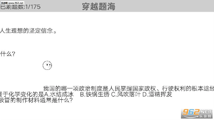 《穿越题海安卓版》是一款采用黑白简约风格打造的文字答题休闲类游戏。游戏玩法十分简单,你既可以凭借敏捷的反应快速刷题,也能通过模拟做选择题的方式来解答游戏中的问题。操作方式同样简便,只需进行简单选择即可。游戏内的题目种类丰富多样,涵盖知识面也十分广泛,感兴趣的朋友不妨来体验一下!