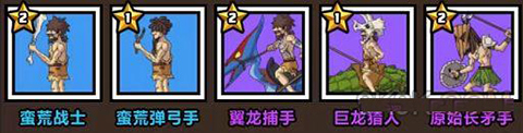 最强阵容推荐一:蛮荒战士、蛮荒弹弓手、翼龙捕手、巨龙猎人、原始长矛手