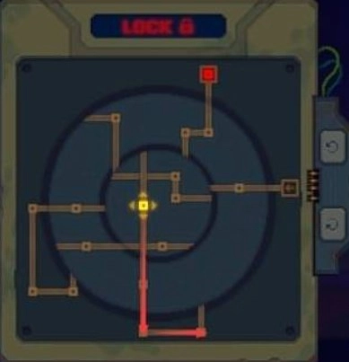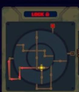 乘坐电梯来到303佩里夫人门口,点击门锁。需要拨动内外盘,将光点移至红点处。