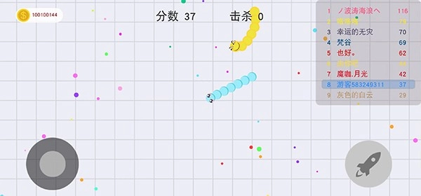 在游戏里吃掉地图上的豆豆,我们操控的蛇就会越长越大。游戏里还会有其他玩家的蛇,我们得小心别让自己蛇的头部撞到墙壁或者其他蛇的身体,一旦撞上就会游戏失败。