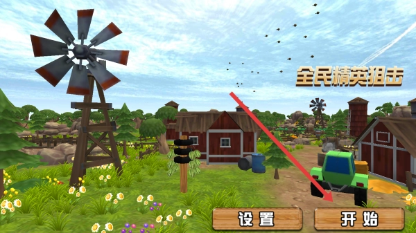 进入游戏主界面后,点击【开始】按钮,即可进入《全民精英狙击》的游戏流程,开启农场场景下的射击冒险。