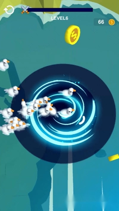 您先把鹅移到近处,收集硬币,接着从泥土里挖出鹅帮成员,一直到通过漩涡进入森林,找到其他帮派为止。