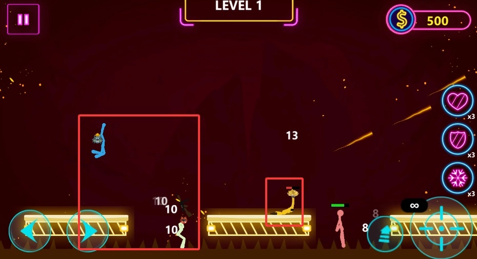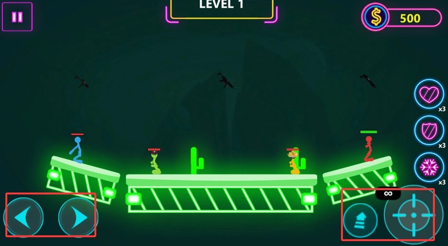 左右摇杆控制火柴人移动,想往哪走往哪走。