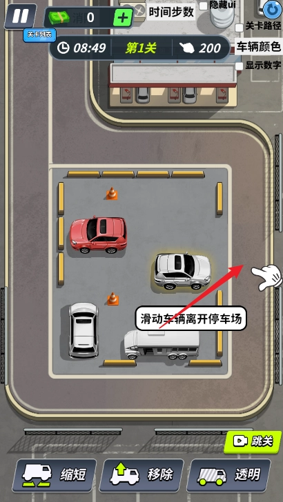 简单玩法与规则:游戏的玩法和规则十分简单,只需移动车辆,规划汽车驶离停车场,完成关卡,消除交通拥堵的阻碍即可。