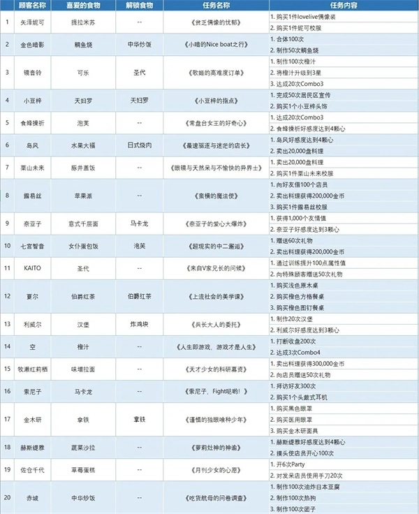天生的撩妹高手:在服务过程中,有机会提升特殊顾客的好感度。这个能力在前期冲特殊顾客好感度阶段比较实用,但到了后期就没什么作用了。