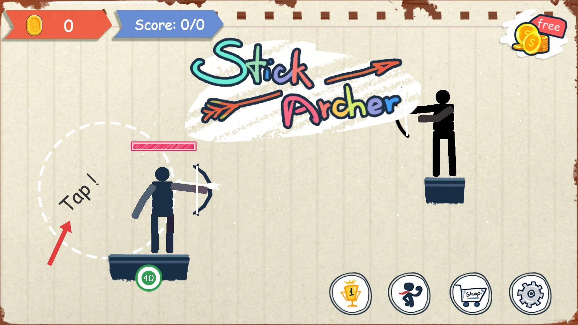 进入游戏界面后,注意观察左下方的Tap提示区域,点击该区域就能使我方火柴人弓箭手进入蓄力待射的状态,为攻击敌方目标做好准备。