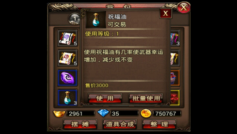 使用“纯净祝福油”同样能够改变武器的幸运值,使用之后可能会出现两种情况:一种是武器的幸运值有所增加,另一种则是保持不变。
