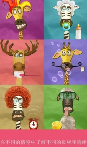 情绪动物园里,游戏场景十分多样,还有各种各样的益智道具。你看,长颈鹿换上了充满墨西哥异域风情的服饰,化身为灵动的舞者;小绵羊跑到了冰天雪地的滑雪场,正美滋滋地吃着可爱的冰淇淋;驼鹿则穿着喜庆的圣诞装,围在温暖的壁炉旁,享用着美味的小熊饼干。