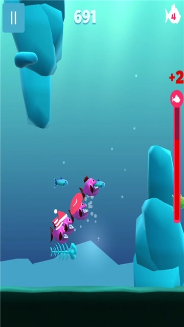 游戏的休闲玩法设定是从体型最小的鱼类开始捕食,接着逐步去吞食更大的鱼。