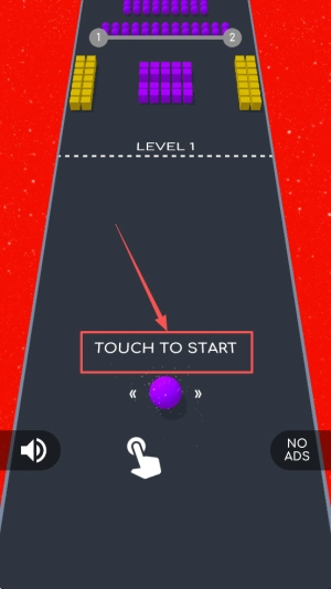 点击「TOUCHTOSTART」即可马上开始奔跑,右上角的NO ADS标识能确保画面清爽无干扰。