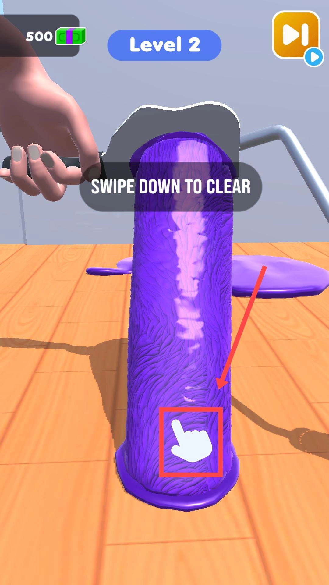第二关要跟着指引向下滑动来清除紫色物体,得注意控制好力度和方向,按照要求把它们清理干净,这样就能达成关卡目标,解锁新的挑战,还能积累经验值。