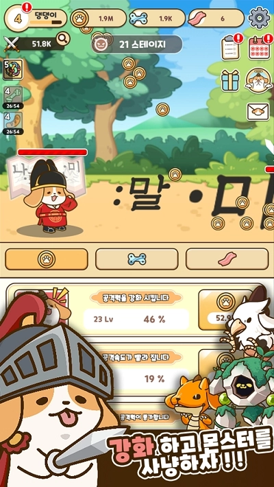以勇敢小狗为主角的育成类放置游戏,无需玩家手动操作战斗,离线时也能自动运行;可爱的画风是其最大亮点,这款充满优势的放置游戏对玩家来说既可爱又有趣,感兴趣的话就来体验《勇敢的小狗》吧!