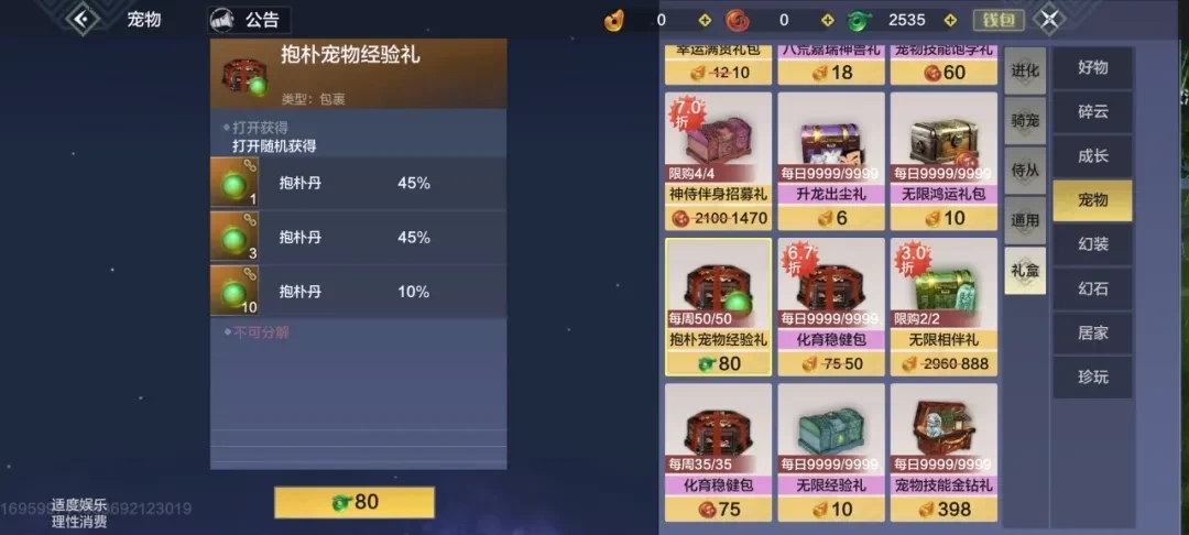 ○ 抱朴宠物经验礼