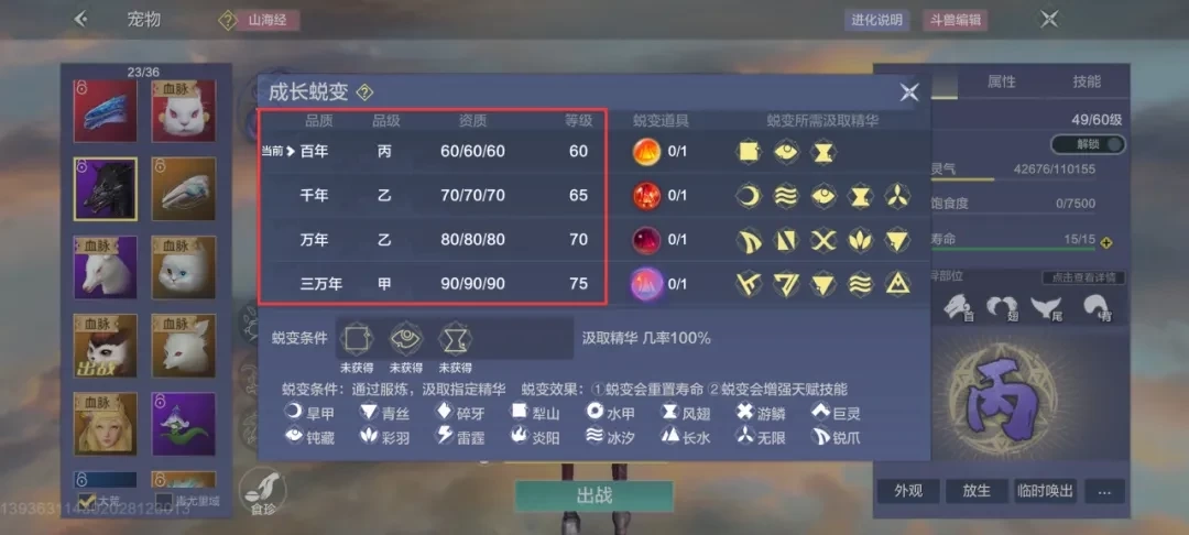 属性转化率会区分野宠和进化宠,但这并不影响宠物的实力。宠物的实力是按年份来划分的,具体分为普通、百年、千年、万年、三万年和五万年。