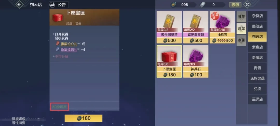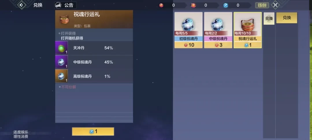 ②在西岛主城的医官巫彭那里,可以兑换初级、中级、高级祝魂丹以及祝魂行运礼这类宠物药品(巫彭店铺售卖的药品每周都会更新,要是暂时没有想要的,下周再来看看就行)。兑换这些物品需要用到玉角血精、玉角魄果、巫人灵根、并封神髓、龙鱼灵根、黄兽神髓。