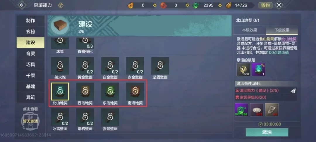 ● 【山海拓元】包含南海、东岛、西岛、北山、大荒等不同区域的引导玩法,完成后能获取各类养成资源,此外还展示了各区域的主要玩法、推荐等级等相关信息。