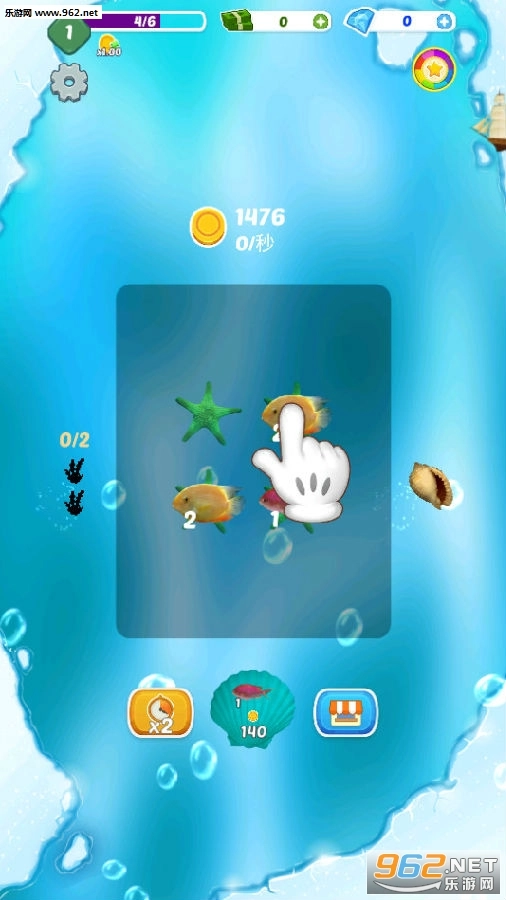 持续把相同的小鱼合并起来,鱼的数量越多,体型就越大,你后续能得到的收益也会随之增加,海洋里的生物种类也会更加多样。