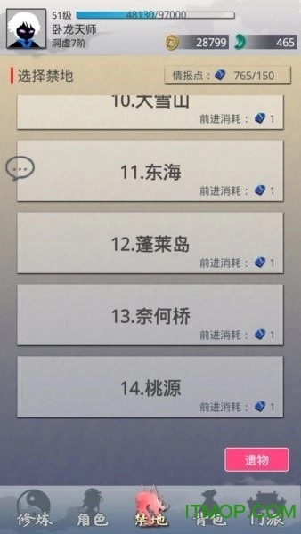 注意:需要通关禁地地图1才会出现修炼页面哦~
