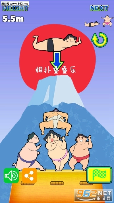 玩家在游戏里得把一个个相扑选手叠起来,把控好他们的平衡,让堆叠的高度不断增加。