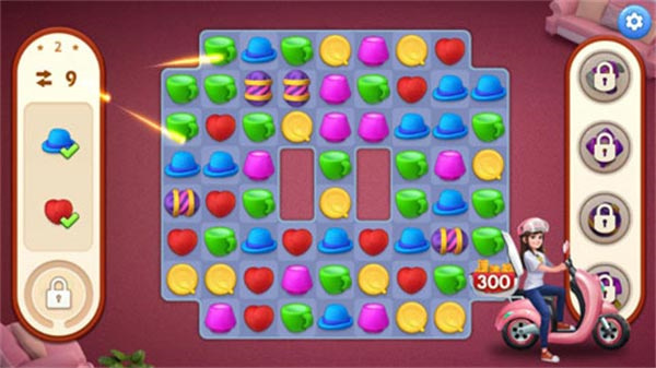 游戏采用经典的三消换位操作方式,具体是按住某个消除道具,将其与相邻的道具交换位置,只要有三个或三个以上相同的消除元素连成一条直线,就能完成消除。在游戏里整理房屋时,大部分环节都是系统自动处理的,不需要特别关注操作过程,因此大家可以跳过建造的步骤,把更多精力放在消除玩法上,建造部分只需当作欣赏内容来看待就好。