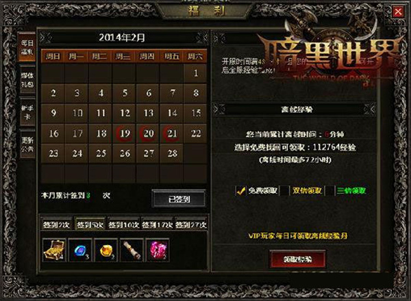 当月签到次数达到一定标准后,就能领取到商城中各类道具对应的奖励。