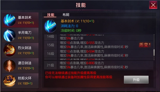 在剩余的三个技能里,我们通常会优先提升烈火剑法与逐日剑法。这是由于烈火剑法升级后不仅能增加连击次数,还能提升暴击概率,是战士在中后期闯荡江湖、克敌制胜的关键技能;而逐日剑法升级则可以扩大攻击范围,搭配高级基本剑术使用时,还有机会实现远程麻痹的效果。
