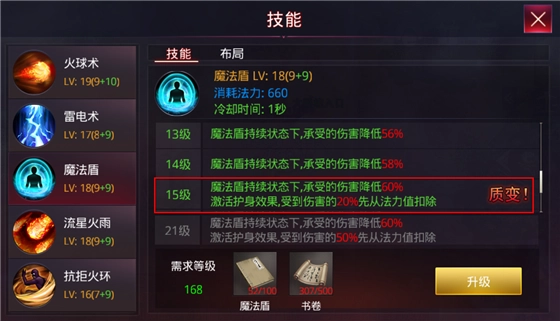 法师的防守核心技能当属魔法盾,常规情况下,攻沙战前最好把魔法盾升到15级,这时会出现红盾特效,能触发护身机制——受到伤害时,24%的部分会优先从法力值里扣除。魔法盾的升级依赖书卷和书页,这里建议算上装备带来的技能加成后,等级控制在15级左右最优,不推荐超过20级。毕竟到了后期,法师的蓝量会很紧张,魔法盾靠消耗蓝量来减伤,等级太高容易导致后续没蓝打输出。