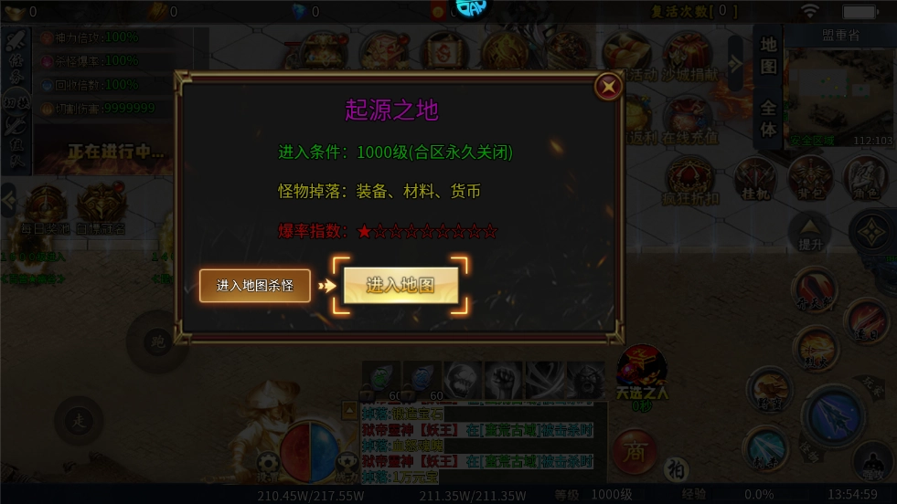 2、游戏里加入了打怪无限掉落充值福利的机制,玩家在打怪时能有机会拿到充值奖励,福利给得特别足。