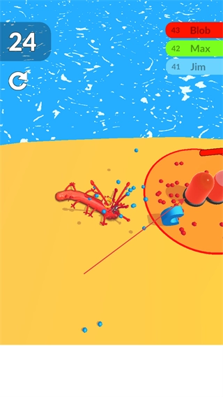 3、控制史莱姆移动,吞食场景里的颗粒,让它的体积迅速增大。