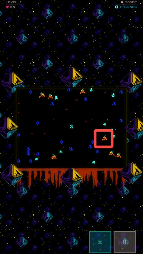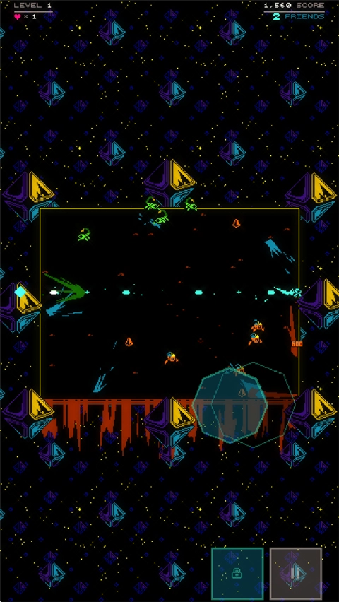 1、玩家将在随机生成的箱型竞技场里操控角色,核心目标是击败敌人并解救被困的蓝色同伴。
