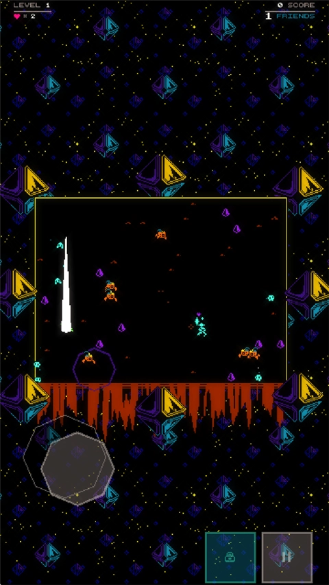 萨特林手机版(Satryn)是一款双摇杆射击游戏,玩家将操控角色在无限波次敌人的关卡中射击并解救同伴。游戏采用双摇杆操作设计,左摇杆控制角色行动,右摇杆负责瞄准射击,十分考验玩家的协调能力。该游戏采用无限关卡设计,玩家清除当前区域所有敌人后会自动进入下一区域,难度逐步提升;同时,每解救一个同伴都会提高分数倍数,拯救60个同伴时玩家会增加一条额外生命,而每获得75000分,游戏中会出现能量分子,收集这些分子可增强自身能量。