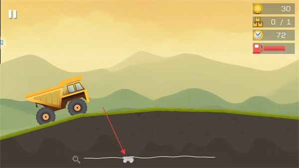 在屏幕下方绘制线条,以此操控卡车的行驶轨迹,借助地形条件推动前进。