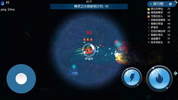 玩家选定精灵后点击开始按钮,游戏随即启动并进入战斗界面。玩家在游戏中需完成躲陷阱、杀敌人、抢精灵水这些操作(这部分具体内容我们下期再讲),详情见下图: