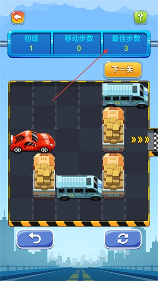 在移动车辆时,注意观察移动步数的变化,力求以接近甚至达到最佳步数的方式来通关。