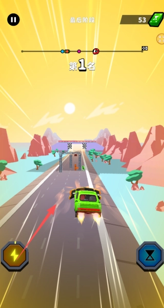 你可以借助左右两边的技能按钮来提高速度,从而迅速超过对手。