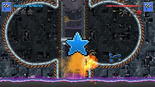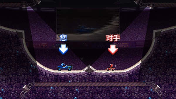 2D在2D横版的挑战模式里,玩家会进入一个封闭赛场,驾驶赛车撞击对手,率先撞到对手头部的一方赢得胜利。
