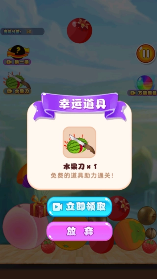 可以合理运用万能颜色这类辅助功能,当找不到相同水果的时候,利用工具来合成困境,让游戏顺利进行下去。