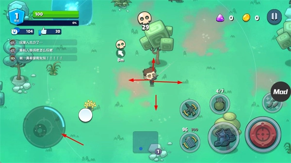 可以通过左侧的虚拟摇杆来控制角色移动,以此避开敌人的攻击,与此同时,借助右侧的武器按钮来开展射击操作。