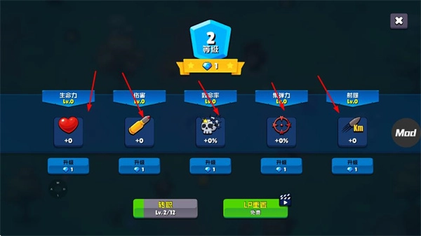 角色升级后,打开属性界面,能够提升生命力、伤害、暴击率、精准力、防御等属性,从而增强角色的生存能力。