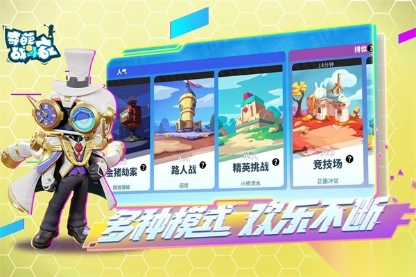《奇葩战斗家》以在线竞技为核心玩法,玩家化身战士,借助奔跑、投掷动作及各类新奇道具与对手展开对抗。游戏内设有多样化的竞技模式,如4V4对战、生存竞技、资源争夺、足球竞技、爆破作战等,每种模式均具备专属规则与获胜要求。玩家需巧妙运用策略与操作技巧,致力于战胜对手。游戏还打造了丰富的角色与武器体系,每个角色拥有独特技能,武器则划分为近战、远程、辅助及场景道具类别,玩家可依据自身战斗风格挑选适配的武器与道具。另外,游戏融入了包含冰、火、雷、水、风元素的战斗属性系统,这些属性在对局中能触发各异的效果。