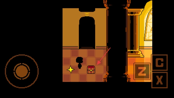 进入游戏场景后,操控角色移动,靠近箭头所指的宝箱等物品,按下对应按键完成交互,开启你的游戏探索之旅。