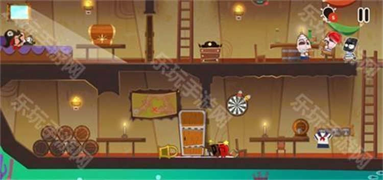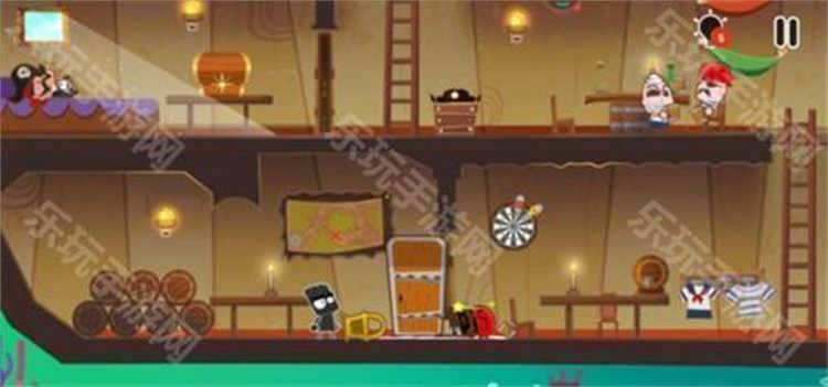 把海盗头子引开之后,点击木箱获取宝藏图,再顺着楼梯接着往上爬。