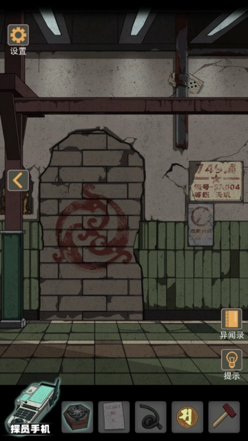 用锤子敲击完整的管道后,石门附近的墙壁脱落,露出了狮子,图纸3随之掉落在地上,我成功获得了图纸3。