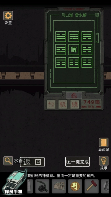 完成消防栓内的小游戏,获取管道与锤子,用来补全残缺的管道。