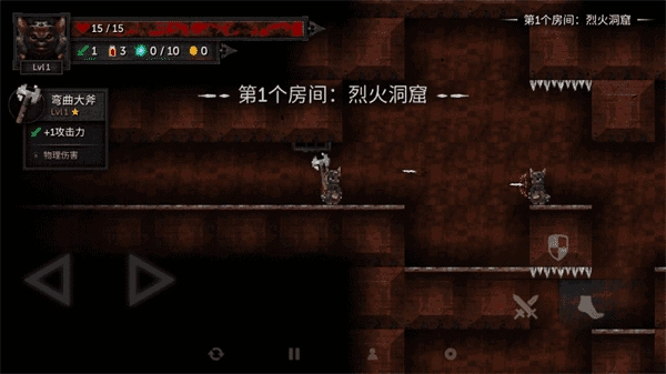 角色的移动可通过左侧操控,右侧则分布着防御、攻击与跳跃按钮。