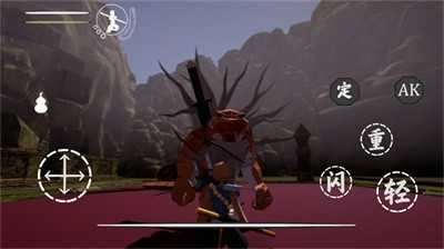 画面右侧分布着人物的技能键、攻击键与躲避键,此外还有作者额外添加的外挂功能“AK”;一旦玩家陷入难以战胜对手的局面,便可点击该功能,从而启用远程攻击手段。