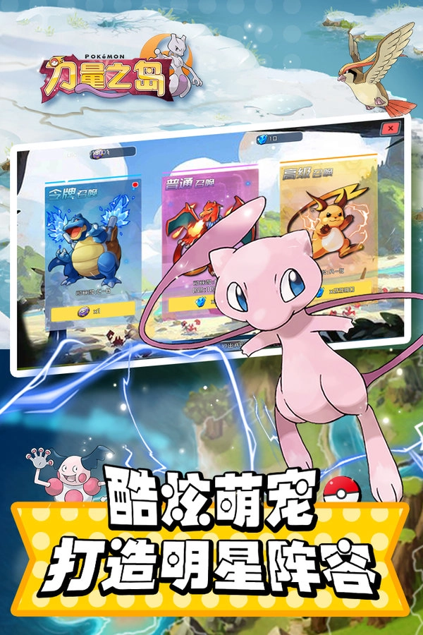 游戏里还原了许多大家熟悉的口袋妖怪,玩家会化身为驯兽师,在力量之岛开启一段冒险之旅。