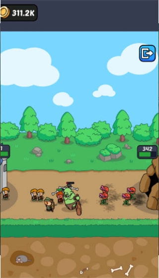 游戏开局时,玩家只有一个小兵,金币数量为0,怪物会持续从地图的右端发起进攻。
