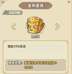 首先,我们来看面具这一板块。考虑到战士职业的特性,我们建议选择金刚面具。这款面具能增加10%的反击属性,并且具备较高比例的生命、攻击和防御加成,与战士职业的特点十分契合。